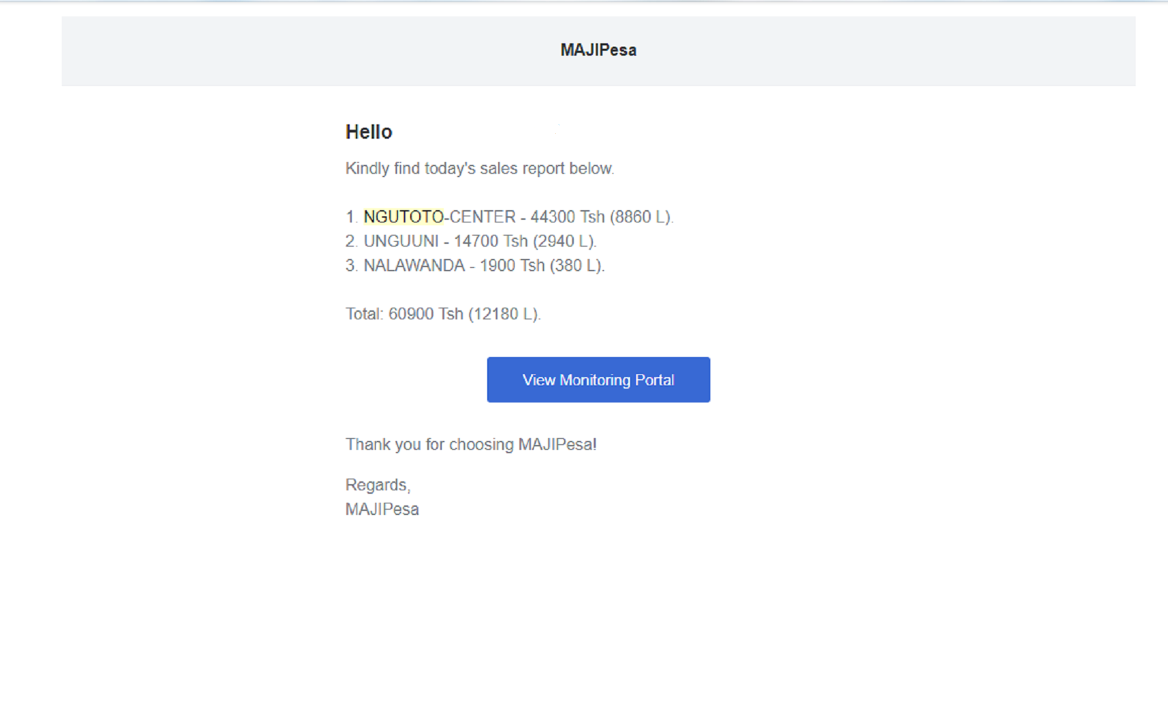 With unique design, MAJIPesa provides a platform where customers and supplier are receiving depending on what they give. MAJIPesa is fully automated it can work 24hrs a day, assures continuation of service and gives no room for sales personnel to steal from bussiness owner.